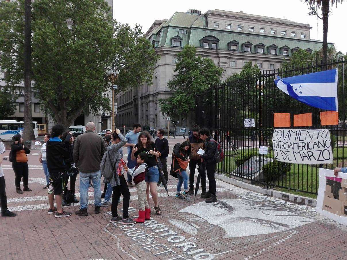 Durante la tarde del domingo 3 de diciembre más de 50 personas se concentraron en Plaza de Mayo en Buenos Aires Argentina, para denunciar la represión del régimen de Juan Orlando Hernández y enviar un mensaje de fortaleza al pueblo hondureño que ha resistido a pesar del toque de queda y la suspensión de garantías constitucionales decretadas desde el día dos de diciembre, posterior al fraude electoral del 26 de noviembre.