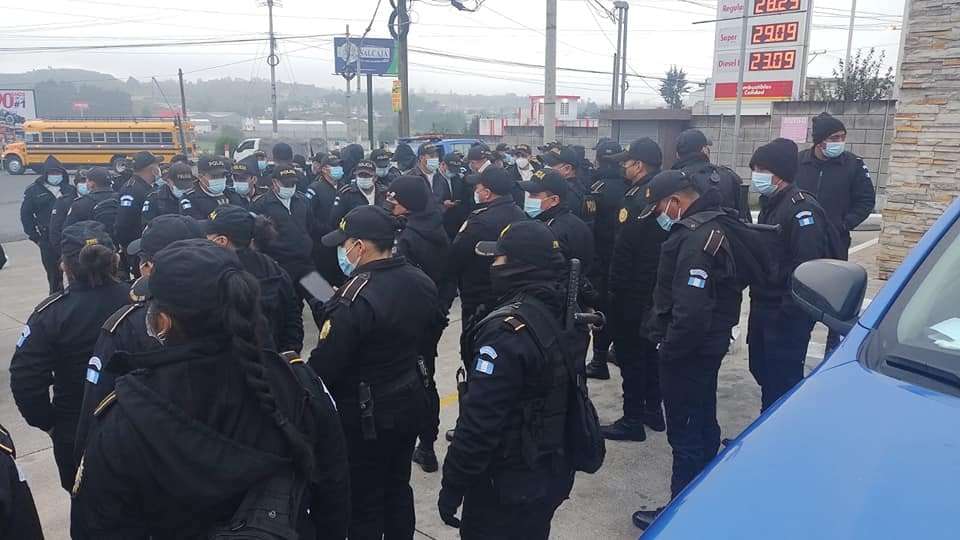 #ParoPlurinacional En Cuatro Caminos, agentes de la Policía Nacional presionan a manifestantes para que liberen el paso. En ese lugar protestan alrededor de 400 personas en contra del gobierno de Alejandro Giammattei.