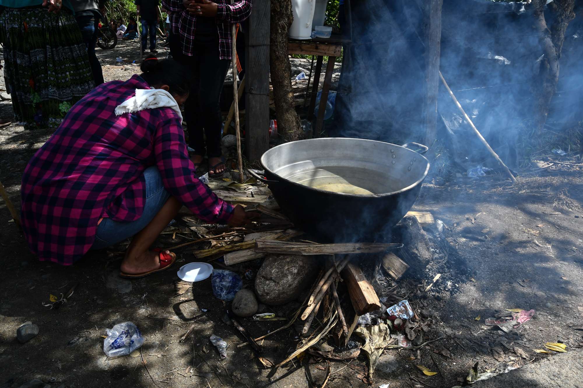 Atrás, en el pueblo, la actividad comienza. En el campamento de la resistencia hay apenas una docena de hombres y mujeres que se desperezan junto a los restos de un fuego improvisado en la orilla de la carretera. El fresco del ambiente es engañoso: en menos de una hora se instalarán el sol inclemente y el calor típicos de El Estor.