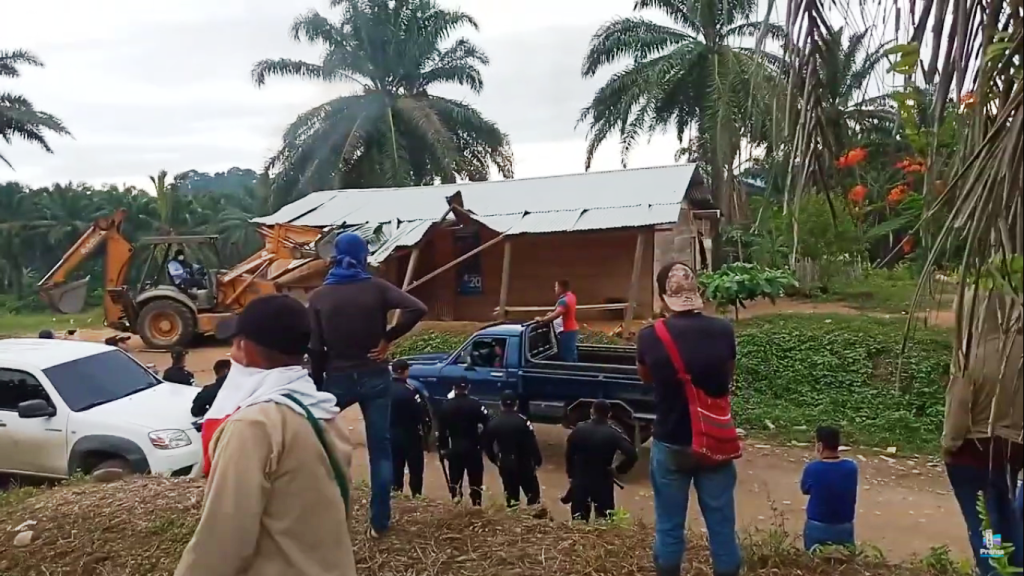 Pobladores de Chinebal informaron que, días antes, soldados del Ejército patrullaban y controlaban a la comunidad; después del desalojo, un grupo de policías continúa en lugar, interrogando e identificando a personas que se acercan a observar los escombros que quedaron luego del desalojo.