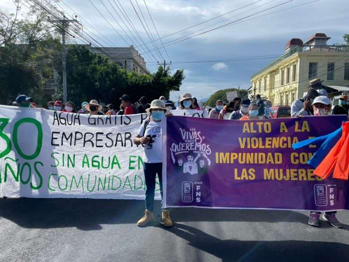 En el marco de la movilización, la Coordinadora Salvadoreña de Movimientos Populares se refirió a la conmemoración de la promulgación de la Declaración Universal de Derechos Humanos y denunció la falta de una ley de agua, las desapariciones, la impunidad y otros hechos o situaciones que constituyen violaciones a los derechos de la población.