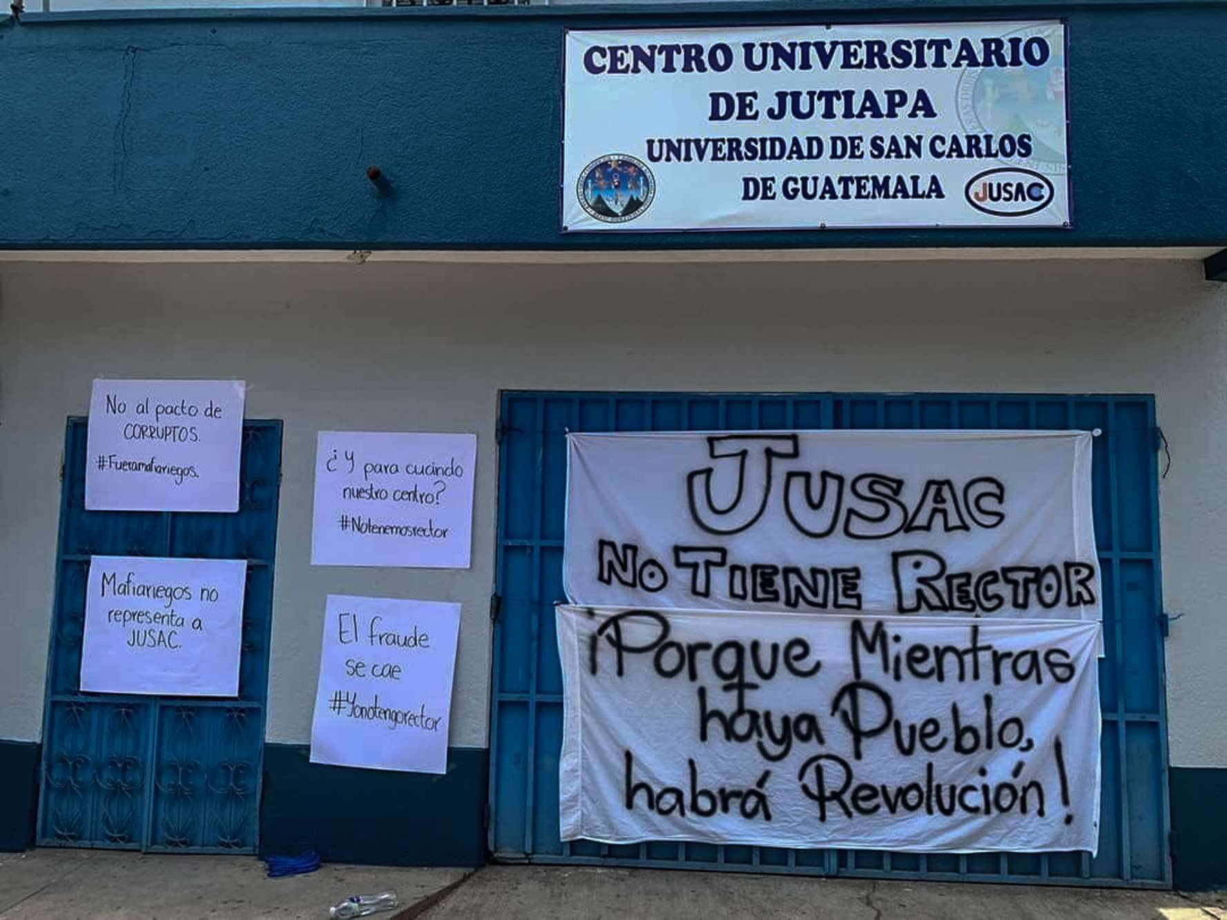 Estudiantes del Centro Universitario de Jutiapa (JUSAC) realizaron una manifestación frente al centro, para rechazar la visita de Walter Mazariegos en la lección inaugural, sin embargo, su participación únicamente fue virtual. Mazariegos no se presentó.
