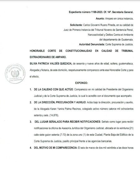 Juez Carlos Ruano continuará bajo acoso judicial. Esto a solicitud de Silvia Valdés Quezada, presidenta del Organismo Judicial (OJ), que incluyó dentro del informe de los antecedentes del caso, una petición para que se confirme la resolución que permite continuar con el proceso para que el juez Ruano pierda su derecho a inmunidad.