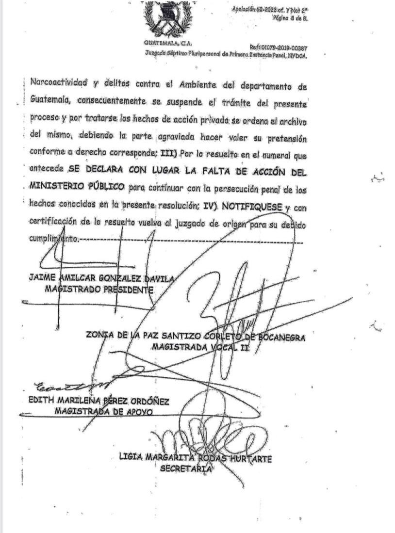 La decisión de los magistrados se tomó pese a que, en 2019, el MP y la CICIG señalaron que las acciones encuadraban en revelación de información confidencial o reservada, que es delito de acción pública.
