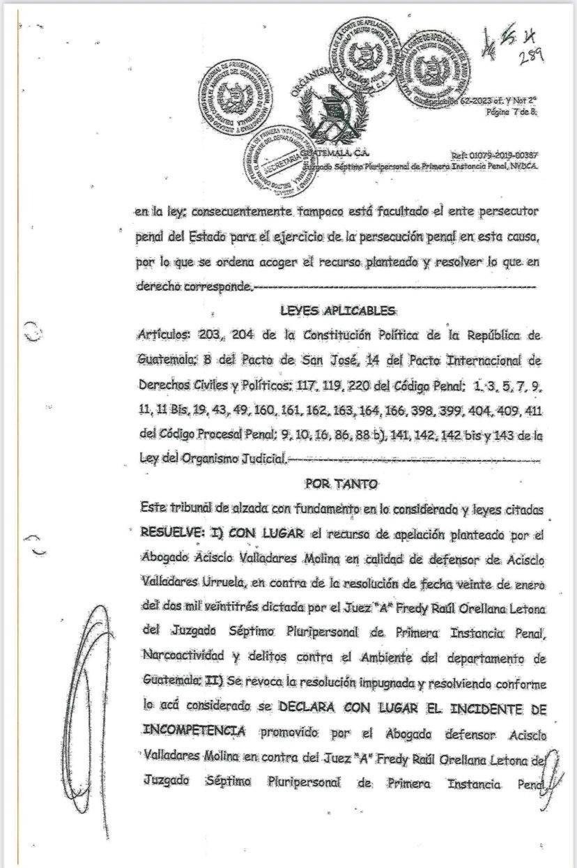 En esa decisión, Orellana se declaró incompetente para seguir a cargo del expediente abierto por el MP. “Destaca que no es competente para seguir conociendo por considerar que corresponde a delitos menos graves. En cuanto al incidente de incompetencia estima el Juez que debe declararse sin lugar porque al no ser delitos de acción privada, la falta de acción queda sin materia”, según indican los antecedentes del recurso legal.