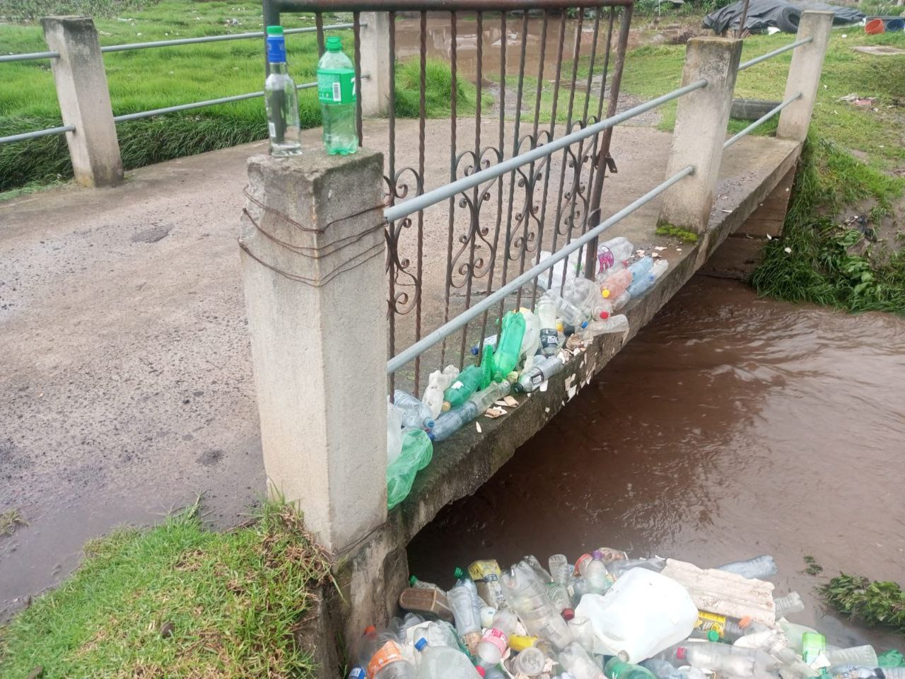La lluvia también arrastró a su paso varios desechos como vasos desechables, botellas de vidrio y de plástico.