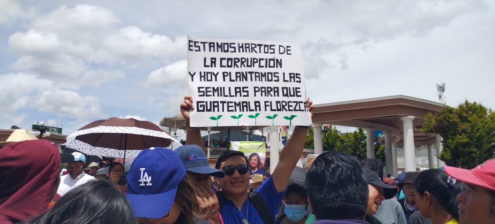 “Las elecciones se ganan en las urnas no en las cortes. MP corrupto. Estamos hartos de la corrupción y hoy plantamos semillas para que Guatemala florezca. Totonicapán se une al amanecer de Guatemala. ¡Semilla vive! Amanece en Guatemala”, son las consignas que expresaron con pancartas las mujeres, personas adultas, menores de edad, pero principalmente la juventud K’iche de la tierra de Atanasio Tzul.