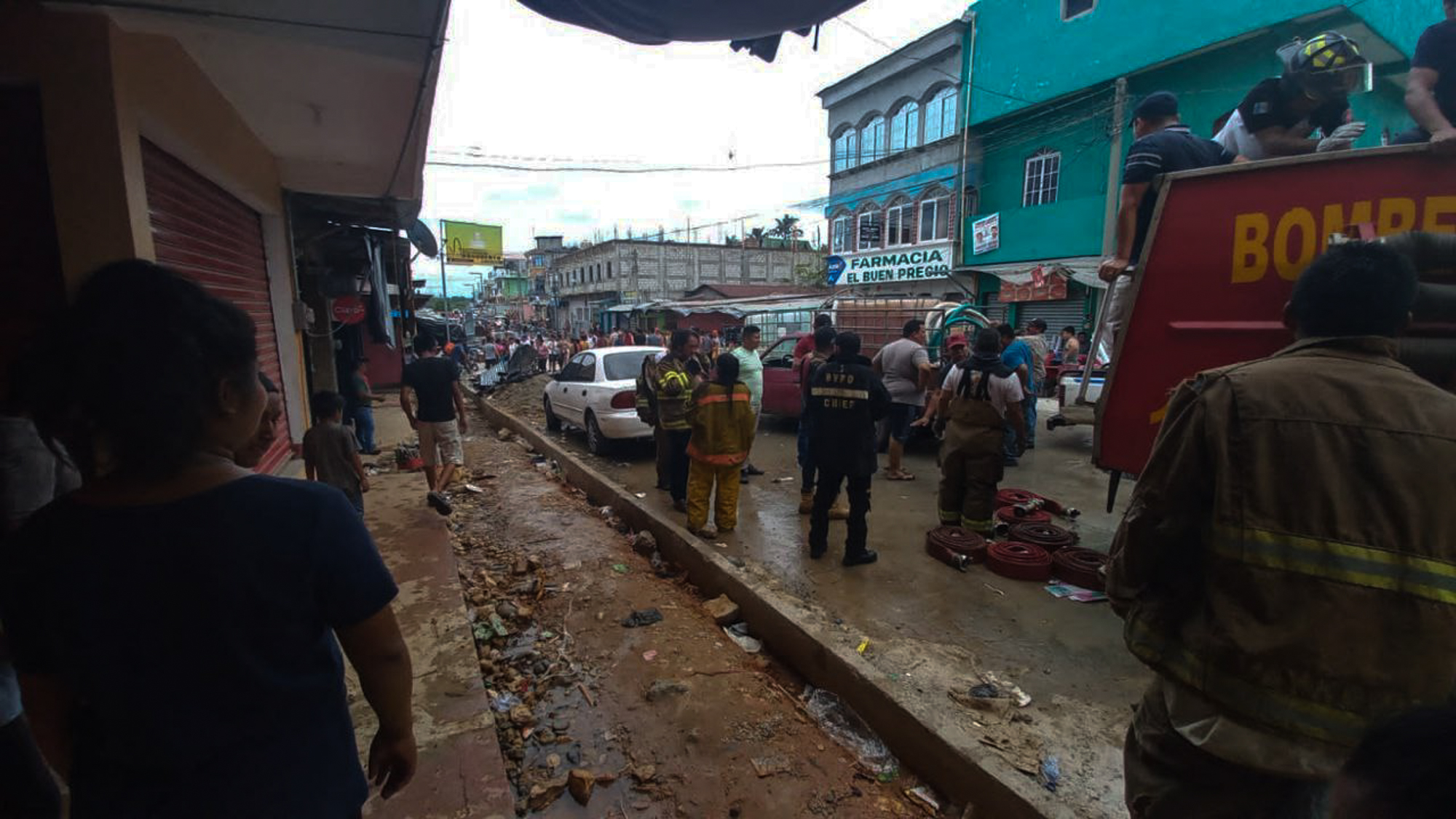 En total fueron tres negocios del mercado La Paz, los que se consumieron en su totalidad según los primeros reportes, aparte de otros locales aledaños que sufrieron daños en su estructura.