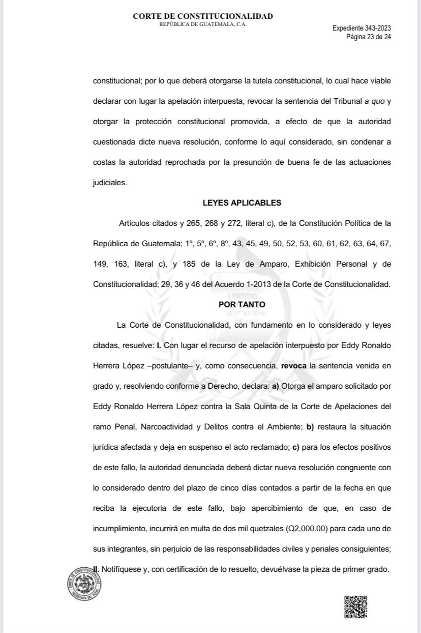 La resolución emitida por la Corte de Constitucionalidad frena la orden para que Reyes Baltazar y Fernando Javier, Ramírez Ramírez, fueran enviados a juicio por los delitos de comercio, tráfico y almacenamiento ilícito, y asociación ilícita.