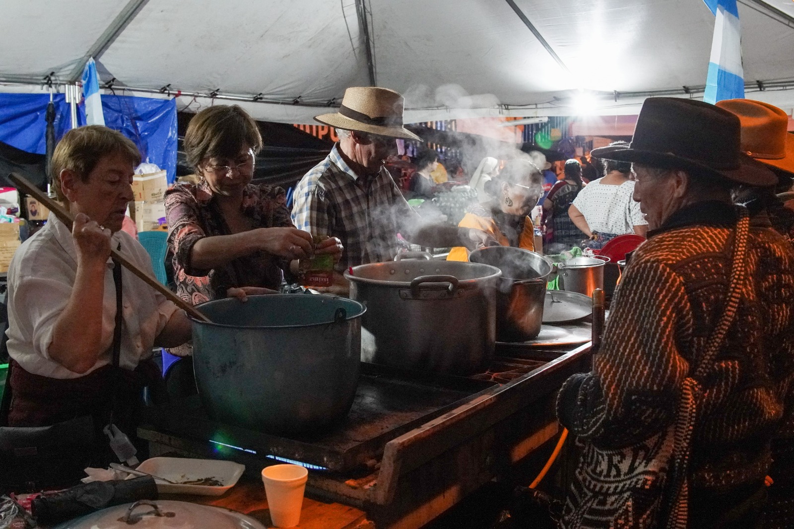 También apoyan decenas de voluntarios, algunos que vienen desde lejos como Oramel Ajsivinac, un maestro de Educación Física jubilado de Patzicía, Chimaltenango quien viajó un viernes por la tarde y se regresó a su hogar hasta el lunes. Ajsivinac es un abogado que trabaja por su cuenta y por eso pudo llegar a apoyar en la cocina desde su aldea El Camán.