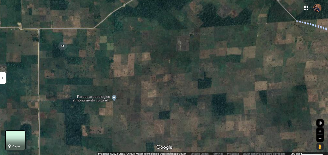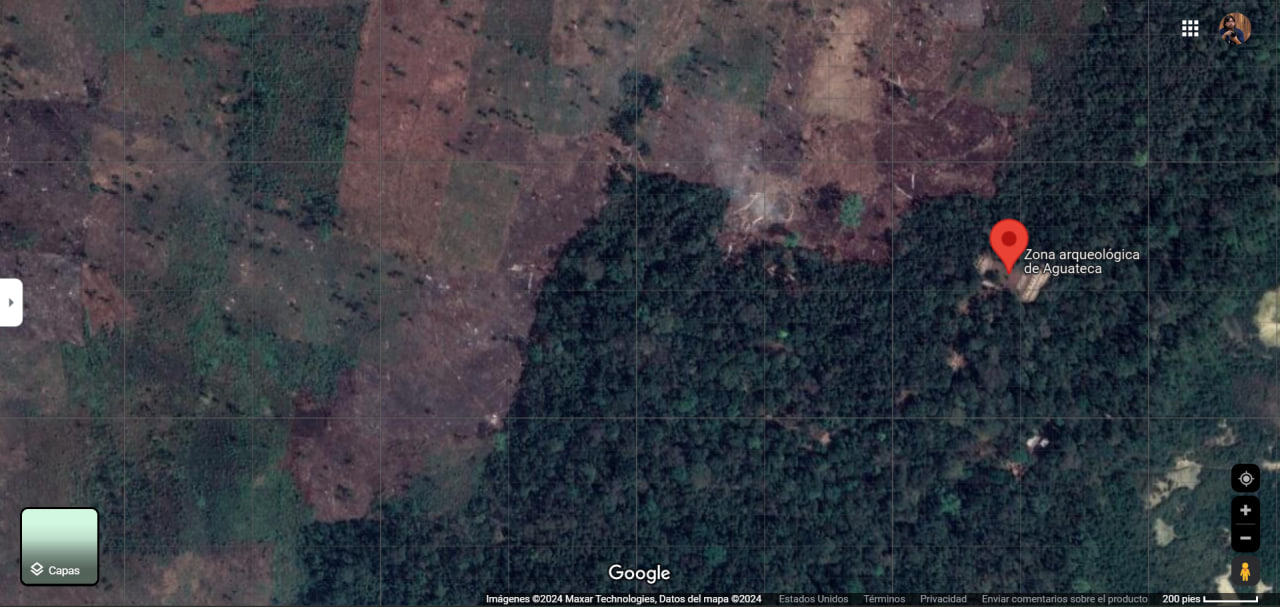 En las  imágenes satelitales se puede observar como la depredación está acabando con la selva, incluso sobre toda el área arqueológica que está bajo protección.