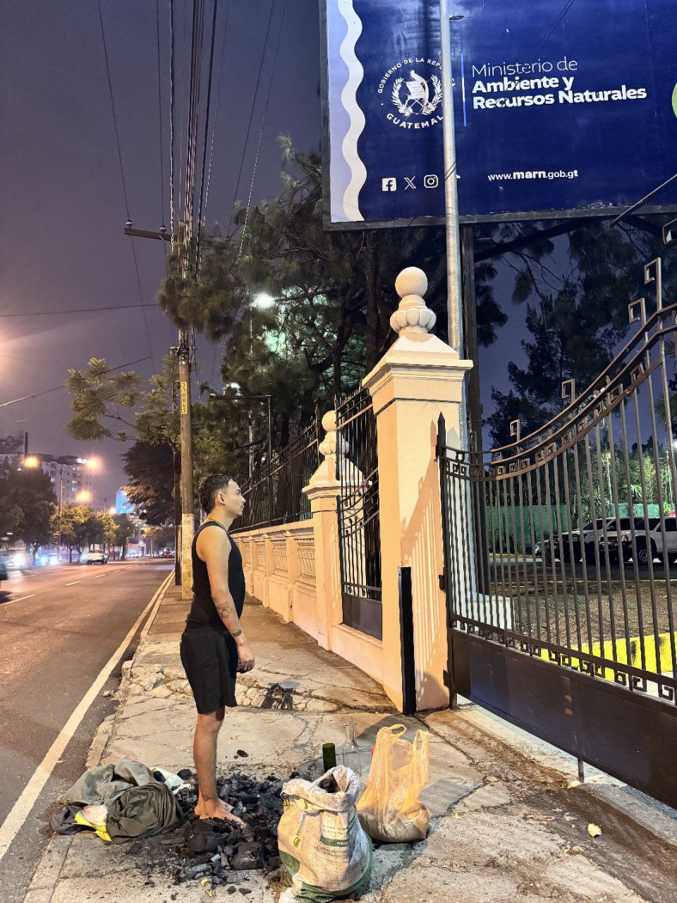 Por su parte Ana González, una de las asistentes, expresó: “Estamos enfrente del Ministerio de Ambiente y Recursos Naturales presenciando el acto de Kevinn Dubón, un performance que nace ante la respuesta de esta situación de emergencia que estamos viviendo, queremos hacer una llamado a las autoridades para que tomen las medidas necesarias en parar estas acciones inhumanas”.