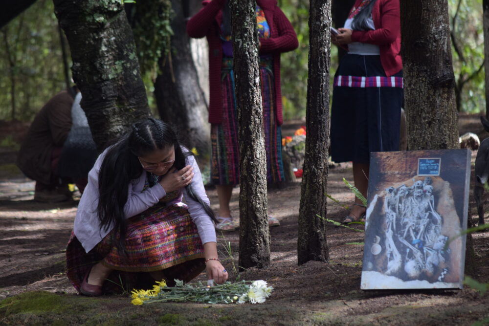 María Canil, de San Pedro Jocopilas, Quiché, contó que su hermana busca a su esposo desaparecido. A su hermano también lo desaparecieron, pero sus restos fueron encontrados cuando realizaron unas exhumaciones alrededor de la Iglesia católica, de San Pedro Jocopilas, porque ahí fueron enterrados varias personas que fueron masacrados, porque la iglesia fungió como destacamento militar, dijo.