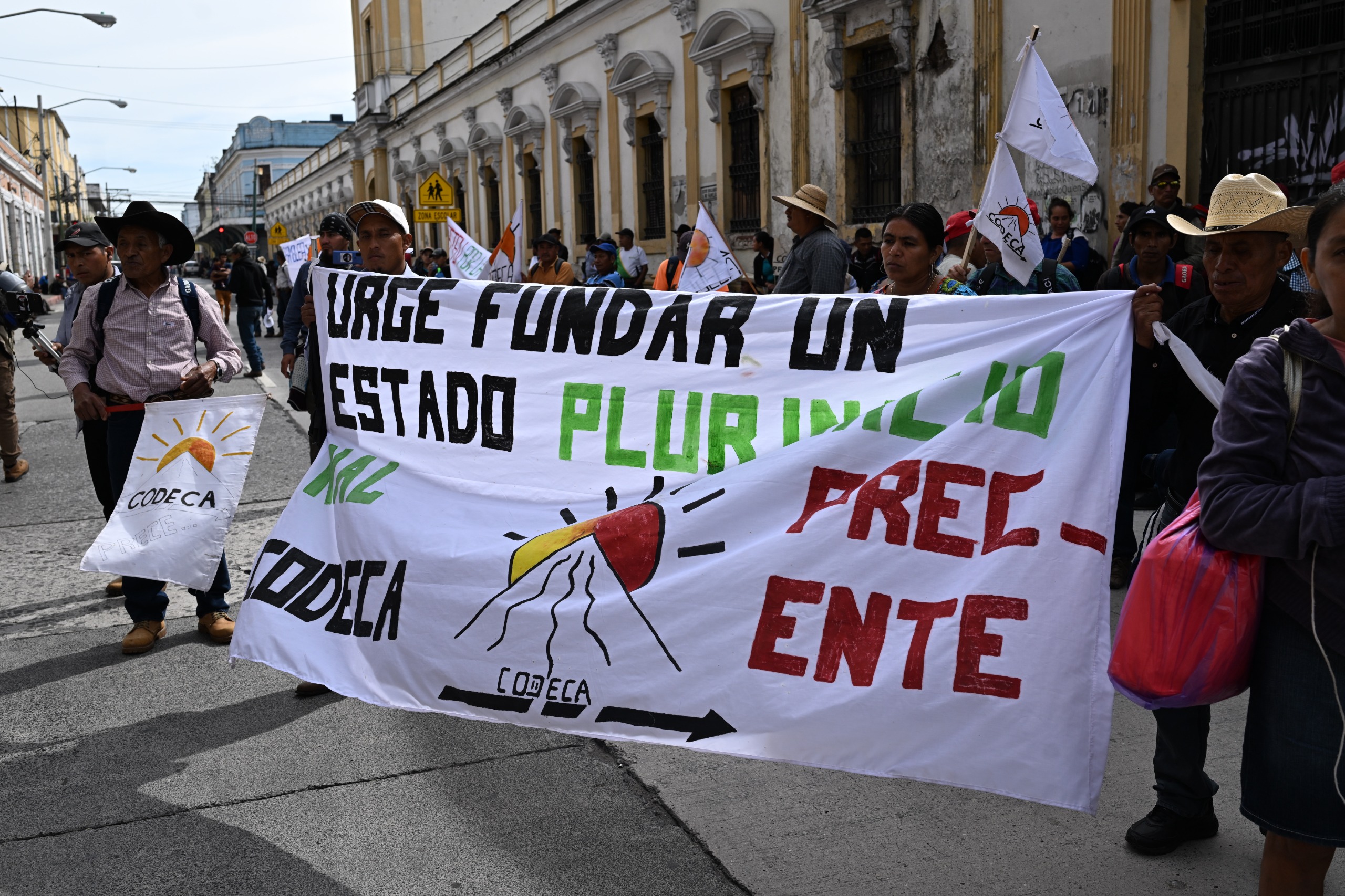 Esta es la primera manifestación de CODECA durante el gobierno de Arévalo. “¡Fuera Consuelo!”, continúa siendo una de las consignas expresadas en pancartas. Los dirigentes de la organización campesina advirtieron que las movilizaciones continuarán si no se escuchan sus demandas.