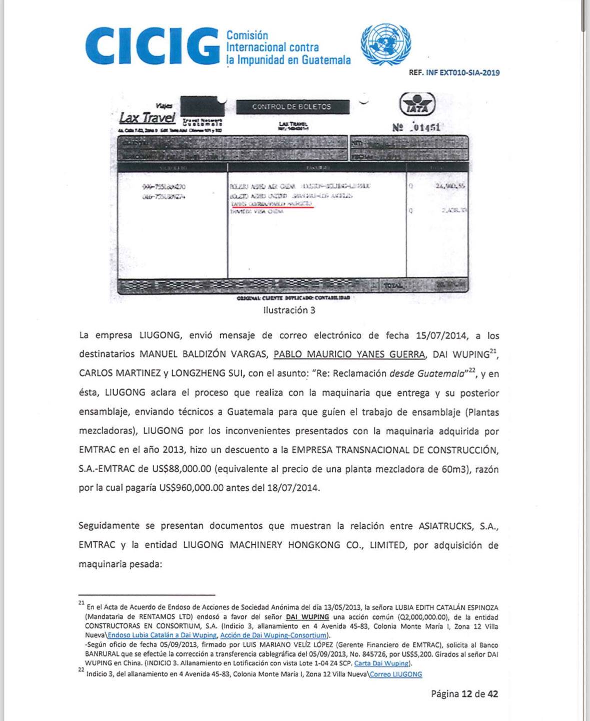 En el documento se detalla la creación de sociedades fuera de Guatemala y el vínculo que existe entre distintas personas vinculadas a esa investigación. Entre ellos, Manuel Baldizón y el exdiputado Pablo Mauricio Yanes Guerra.