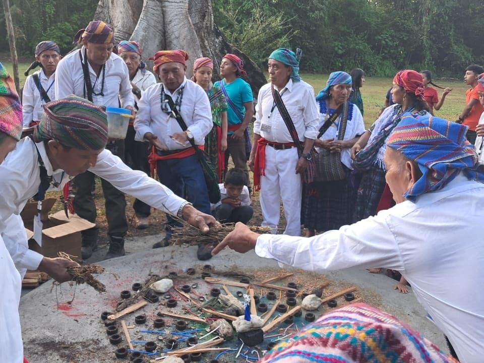 El consejo de autoridades ancestrales y guías espirituales de la Sierra Santa Cruz, Livingston, Izabal, llevaron a cabo una ceremonia maya para pedir permiso al Ajaw para la siembra del maíz.