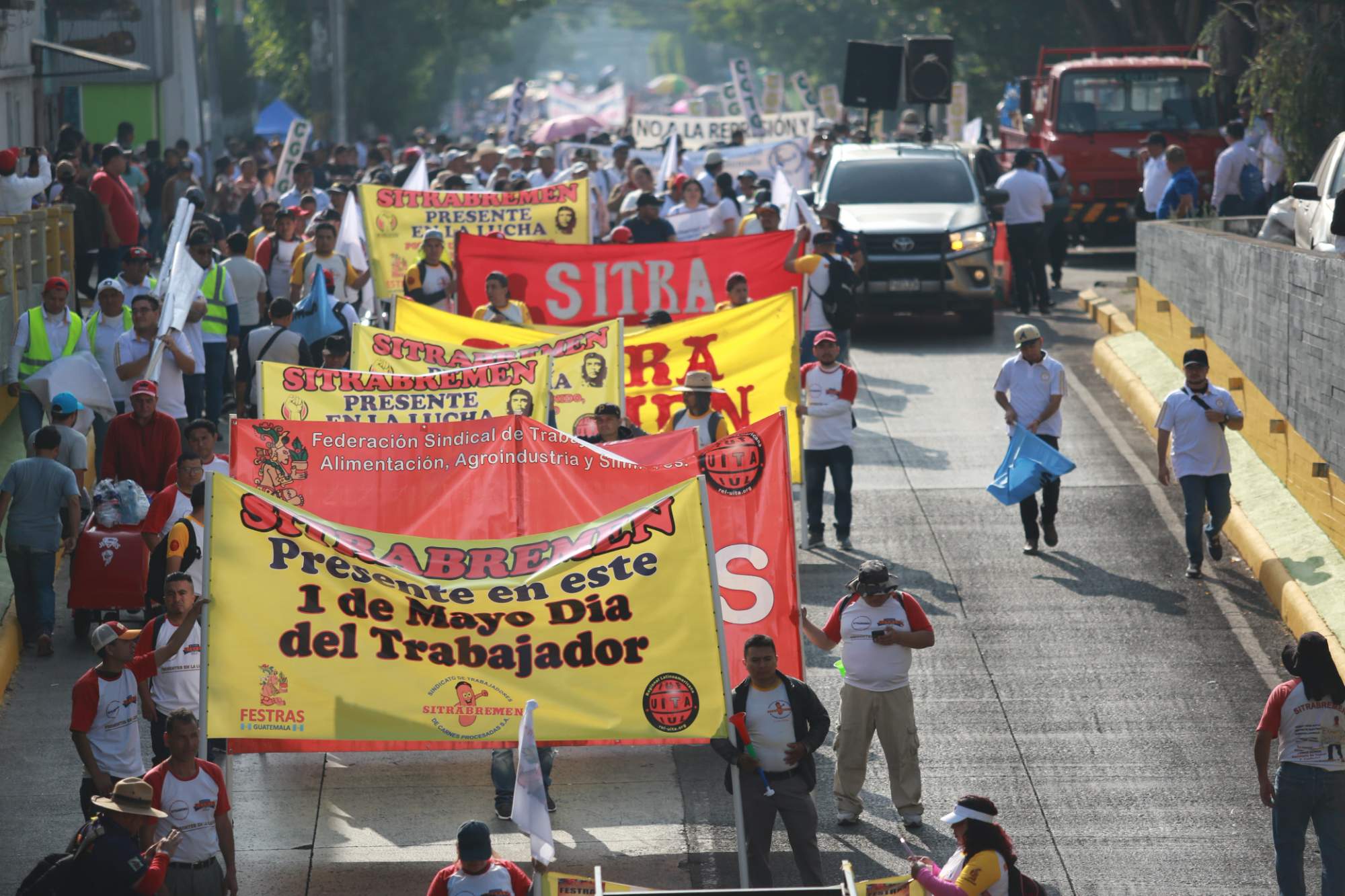 Como todos los años, la caminata se inició en el Monumento al Trabajo, ubicado en la zona 5, hacia las calles de la zona 1 de la ciudad de Guatemala en donde los diferentes grupos se reunieron y enviaron un mensaje sobre el derecho a la protesta. “Queremos manifestar pacíficamente para que mantengamos una democracia que atienda las necesidades de la población. Hoy, esos compañeros que están siendo detenidos bajo la acusación de terrorismo, esos tiempos ya pasaron. Públicamente les queremos expresar nuestra solidaridad a los compañeros de los 48 Cantones y a todas las organizaciones”, declaró Edgar Cruz, secretario general de STECSA.