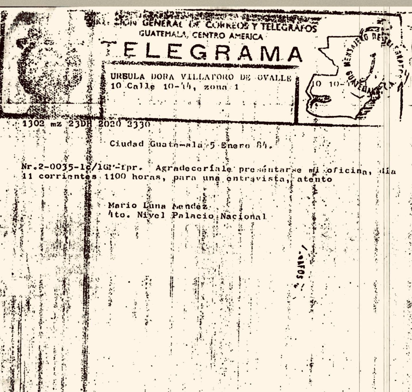 De los datos de la ficha del Diario Militar correspondiente a César Augusto Ovalle Villatoro, se deduce que las fuerzas represivas del Estado mantuvieron con vida al joven durante 105 días, casi tres meses y medio, tiempo en el que habría sufrido las peores torturas. Por si fuera poco, el mismo 4 de enero, día en el que habría sido asesinado, la inteligencia militar del ejército envió un telegrama a su madre, para que se hiciera presente en sus oficinas, ubicadas en el Palacio Nacional.