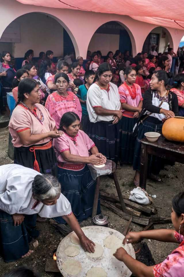 Después de su largo recorrido y de descender más de 600 gradas, la familia Vásquez llega al lugar. A lo lejos se puede escuchar el sonido del tun y la chirimía, y los murmullos de otros grupos que han llegado antes para realizar sus ceremonias. Lo primero que hacen al llegar es persignarse e hincarse para agradecer a la naturaleza.