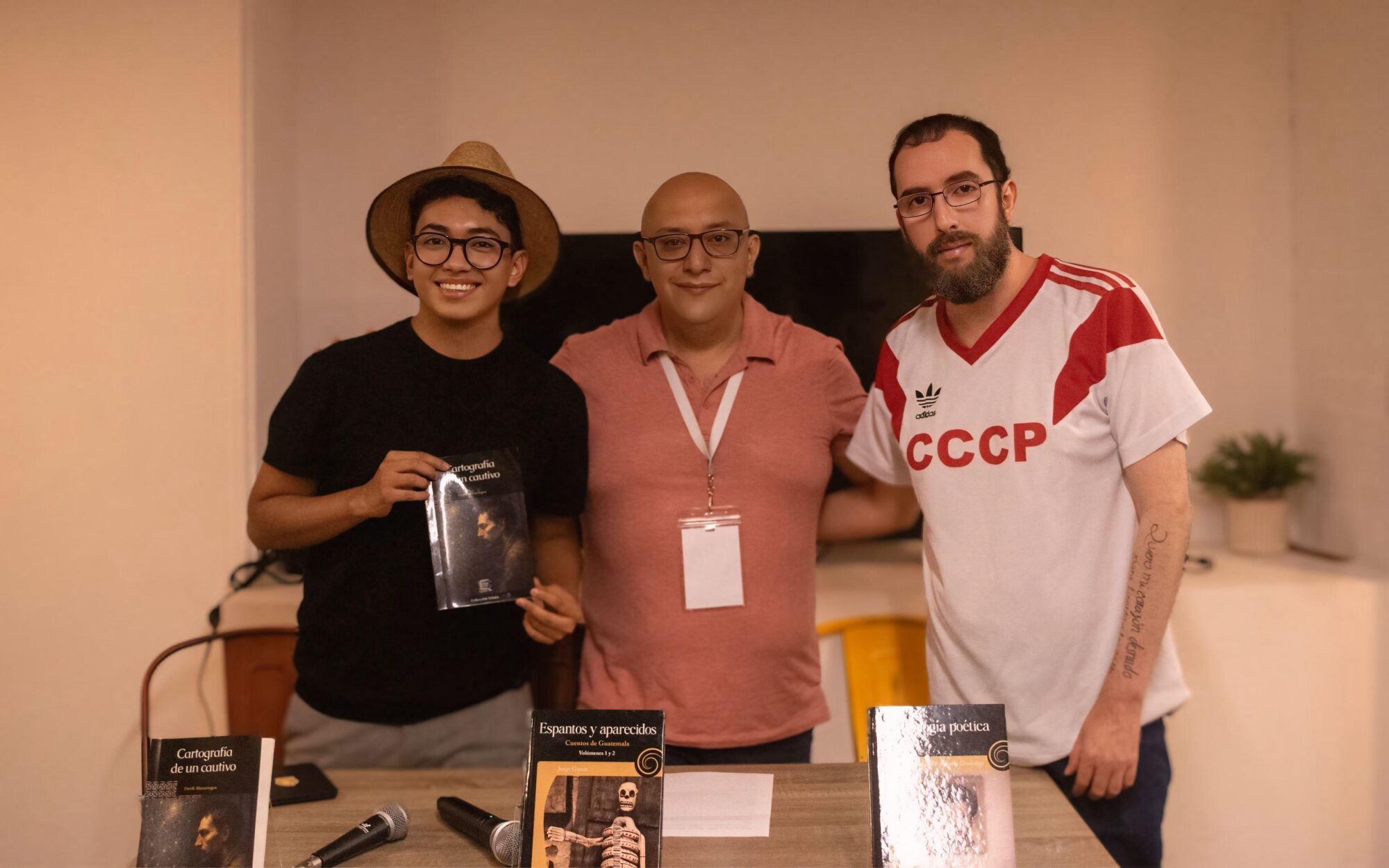 Junto a Cartografía de un cautivo, Cazam Ah presentó también ediciones conmemorativas y especiales de otros títulos que han marcado su catálogo a lo largo de estos diez años: una cuidada Antología poética del escritor Christian Chavarría, y los dos volúmenes de Espantos y aparecidos: cuentos de Guatemala, del narrador Jorge García, libros que han hecho eco en dicha casa editorial.