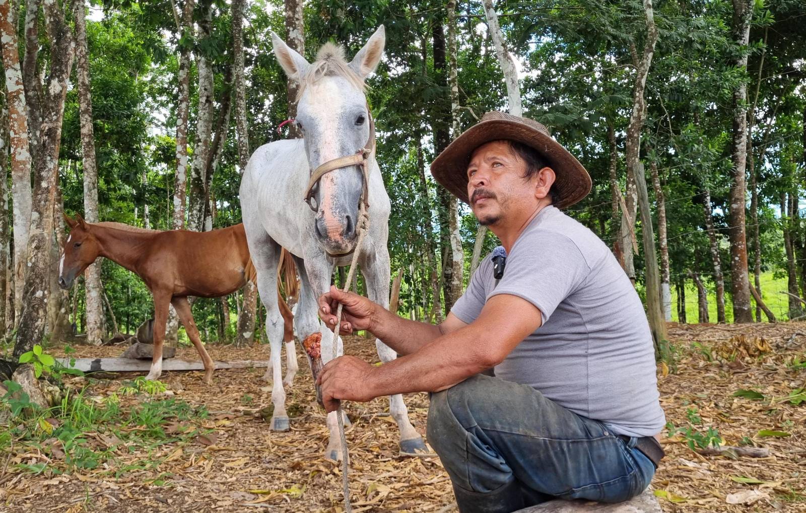 “Esta semana me llamaron para curar a dos perros de un amigo, porque este mal ya no solo está afectando a los ganados y eso nos tiene fuertemente preocupados”, dijo don Santos Murcia, mientras procedía a curar a uno de sus equinos que tiene infectada una de sus extremidades a causa del gusano barrenador del ganado.