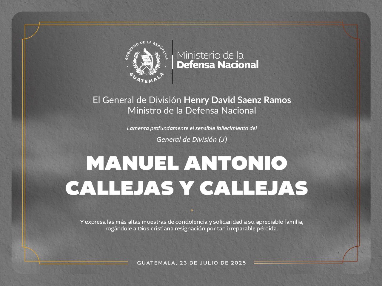 El miércoles 23 de julio de 2025 el general de división jubilado Manuel Antonio Callejas y Callejas falleció en la Ciudad de Guatemala. Murió en su cama, de causas naturales, pese a haber sido condenado en 2018 a 58 años de prisión y a estar ligado a otros dos proceso por graves violaciones contra los derechos humanos que constituyen crímenes de lesa humanidad.