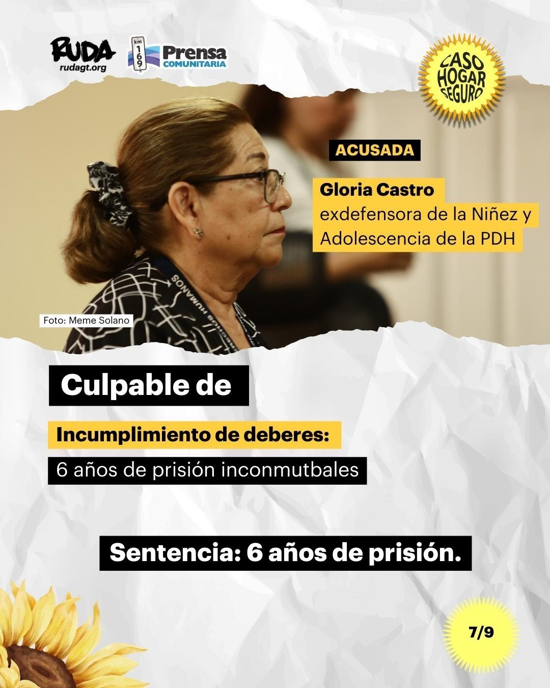 Por otro lado, Gloria Castro, exdefensora de la Niñez y Adolescencia de la Procuraduría de Derechos Humanos (PDH), expresó que durante las 120 audiencias, en ningún momento se logró demostrar el incumplimiento de deberes del que se le acusa.