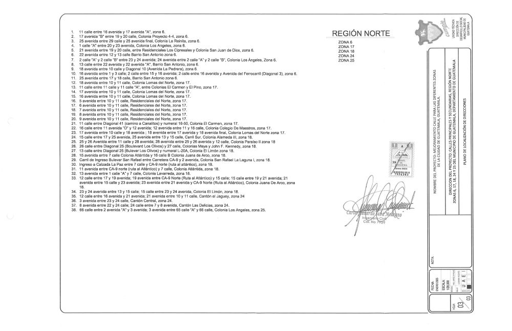 La Municipalidad de Guatemala, a través de la Dirección de Desarrollo Social, adjudicó el pasado 7 de julio un proyecto de Q44 millones 557 mil 066 para tapar agujeros en diferentes calles y avenidas de las zonas de la ciudad capital que presentasen deterioro por fisuras y desprendimiento del pavimento. El proyecto lo obtuvo Pavimentos del Norte S.A., una de las empresas favoritas de Tu Muni. Su gerente general y representante legal es Julio Daniel Díaz Rodríguez.