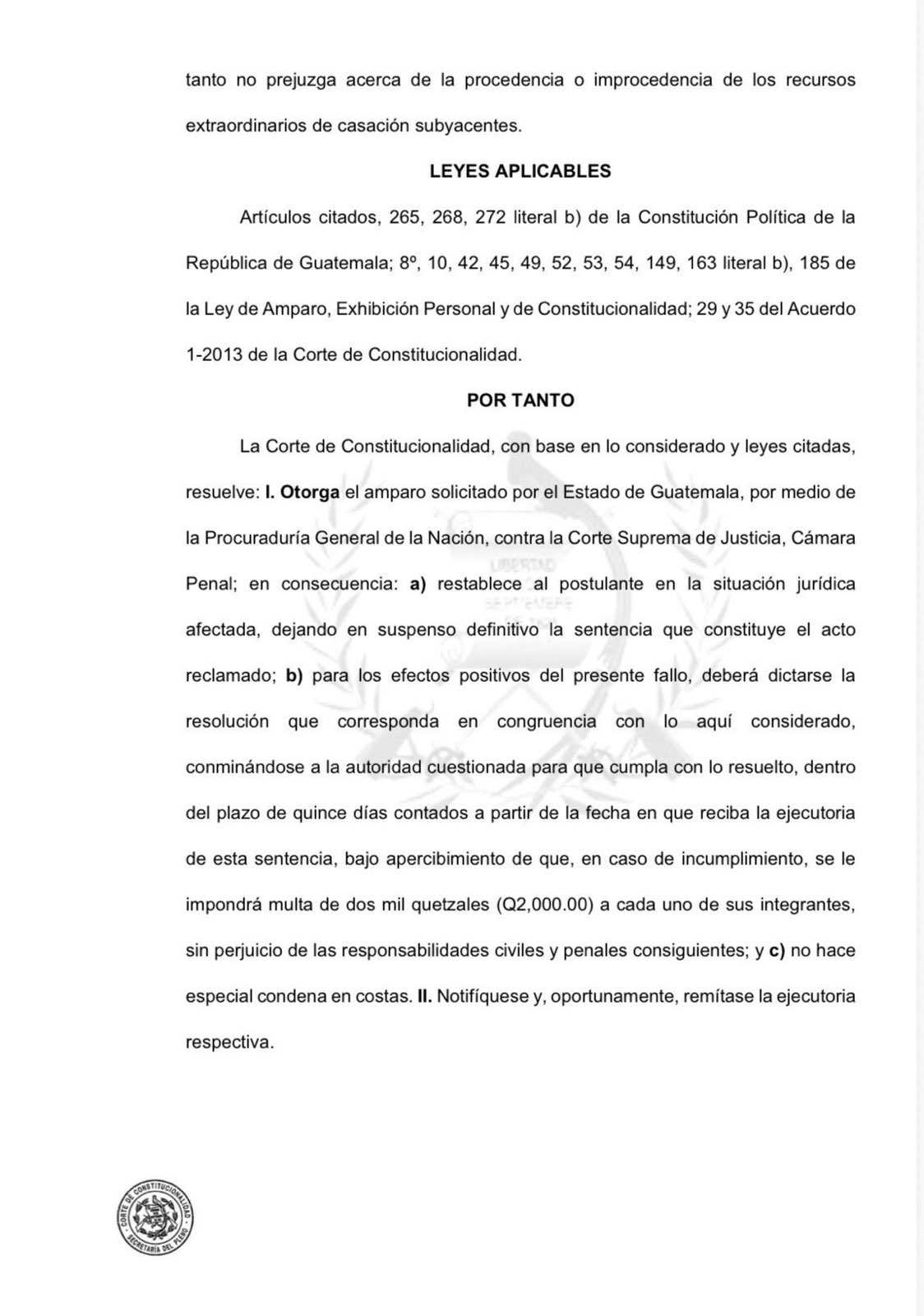 Resolución de la Corte de Constitucionalidad