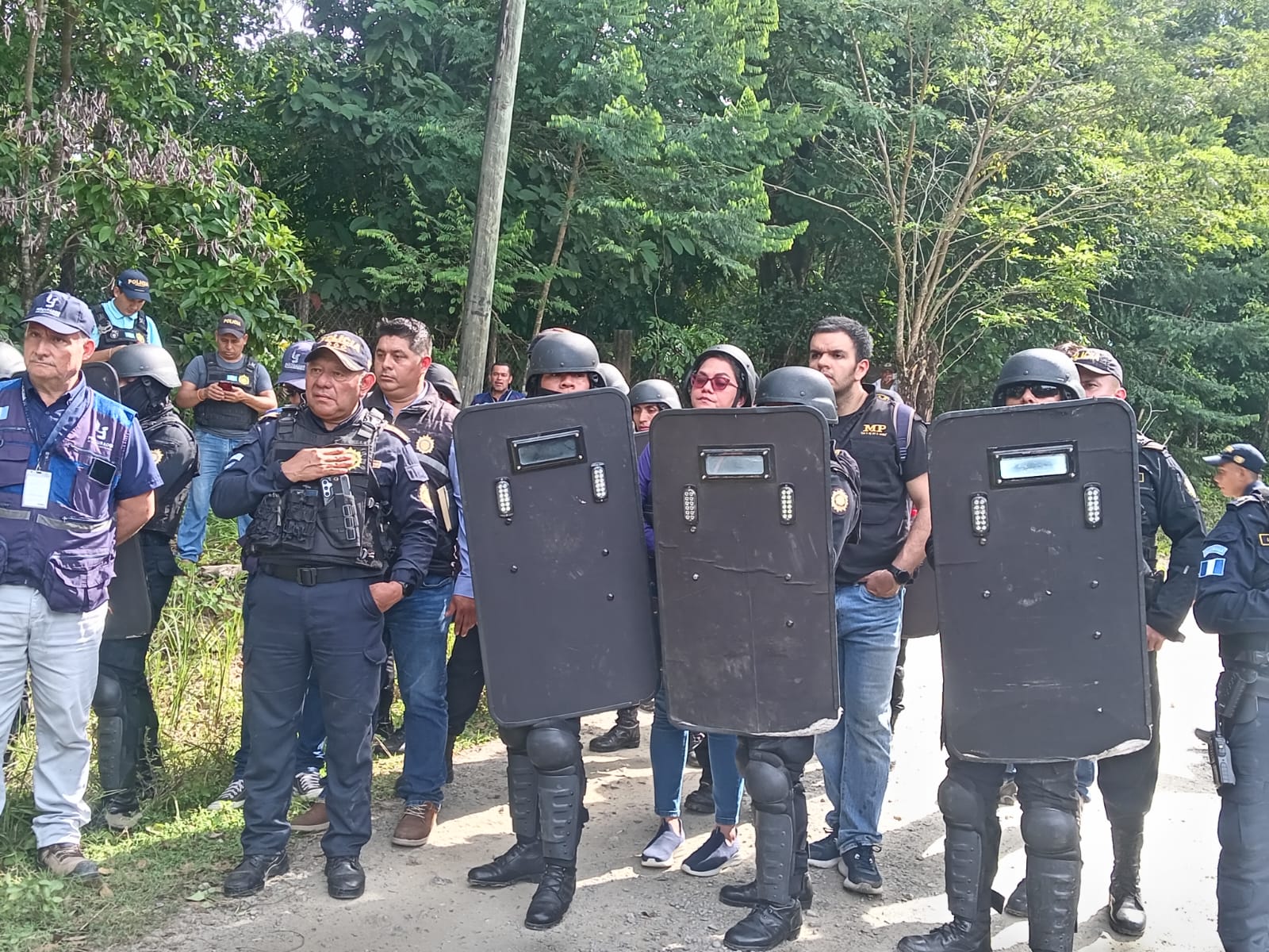 A las 9 de la mañana, el contingente policial llegó a la comunidad acompañado por representantes de la Procuraduría de Derechos Humanos (PDH), la Procuraduría General de la Nación (PGN), el Ministerio Público y un representante de los particulares que reclaman la tierra poblada por las 100 familias.