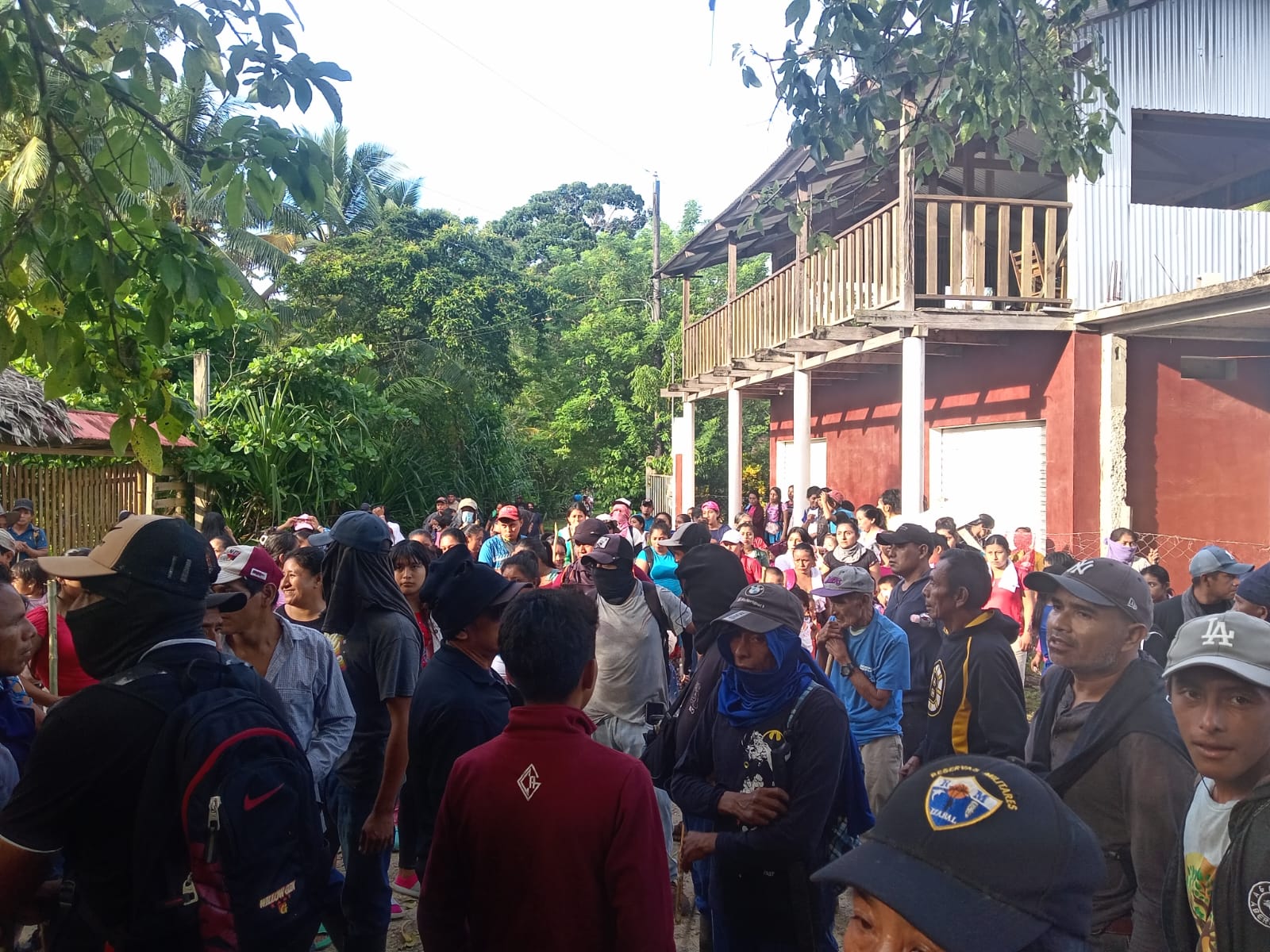 Los pobladores dijeron a Prensa Comunitaria que regresaron a la comunidad el 2017 para reclamar el derecho histórico que les pertenece y, que en agosto del 2022, se enfrentaron a la primera amenaza de desalojo donde la niñez, mujeres y demás personas fueron intimidadas.