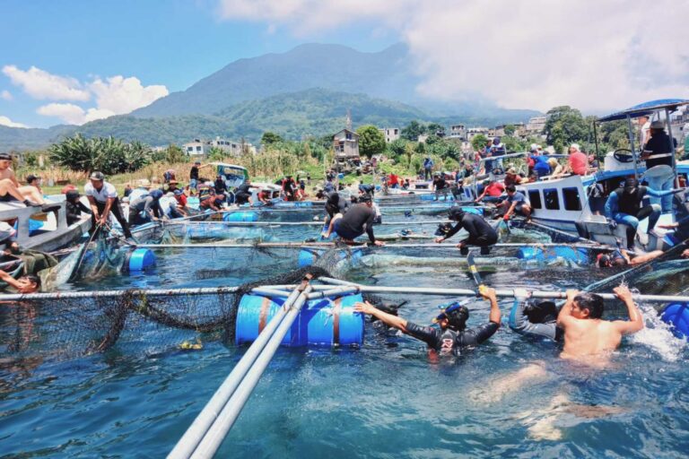 El pueblo Tz’utujil de Santiago Atitlán retira jaulas y 795 quintales de tilapia que contaminan el lago